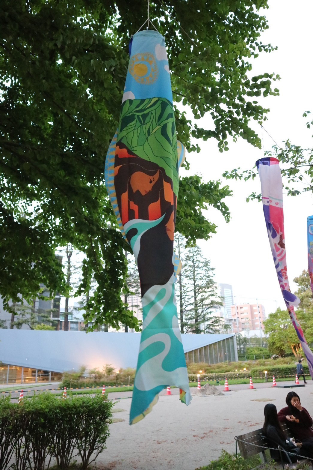 Every year, Tokyo Midtown holds a Koinobori Gallery in the Midtown Garden, featuring around 100 koinobori (carp streamers) designed by artists from around the world, which are hung throughout the park. The theme and purpose of this gallery is to celebrate Kodomo-no-hi (Children's Day), a national holiday that honors the happiness, health, and growth of children.