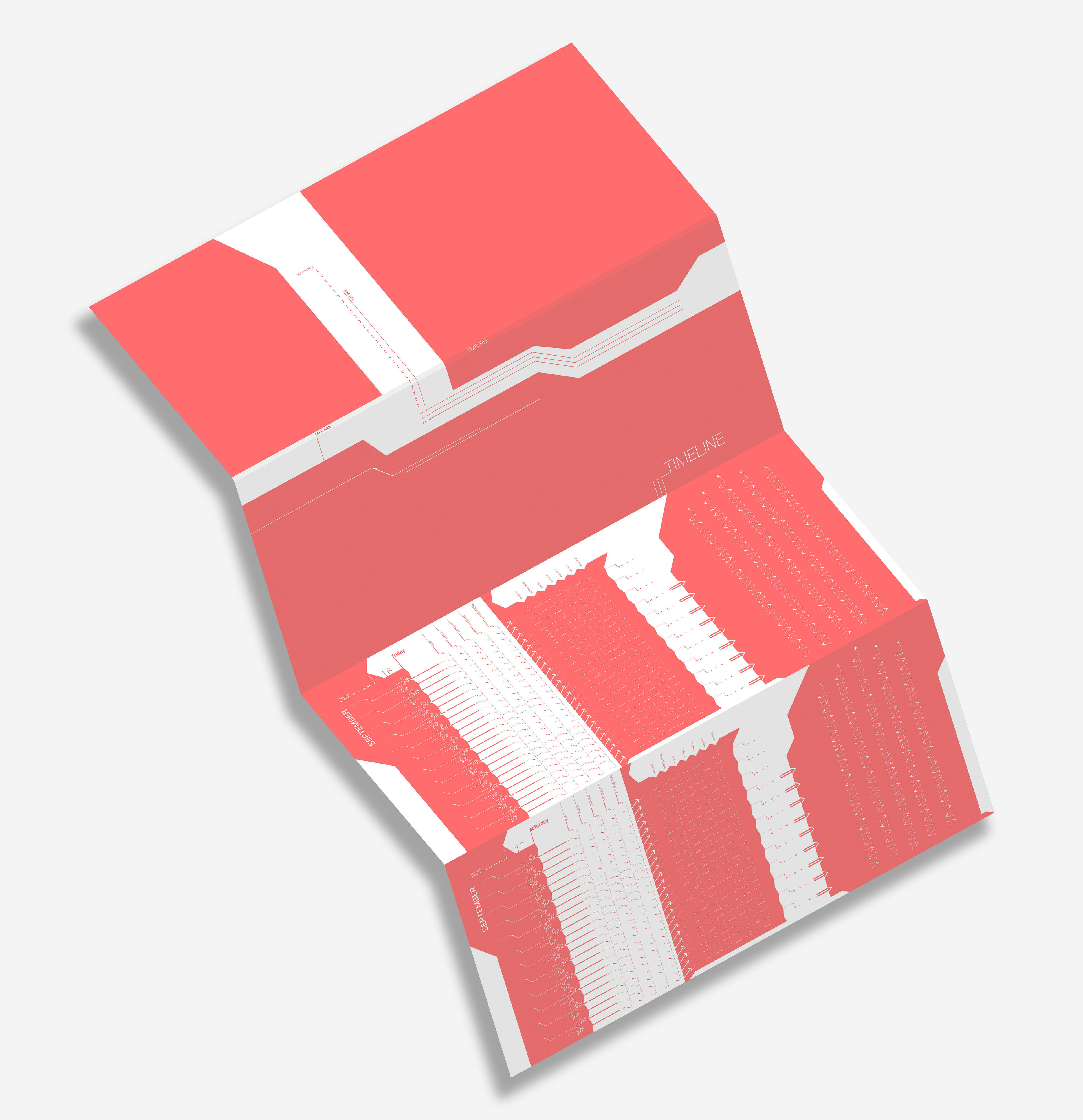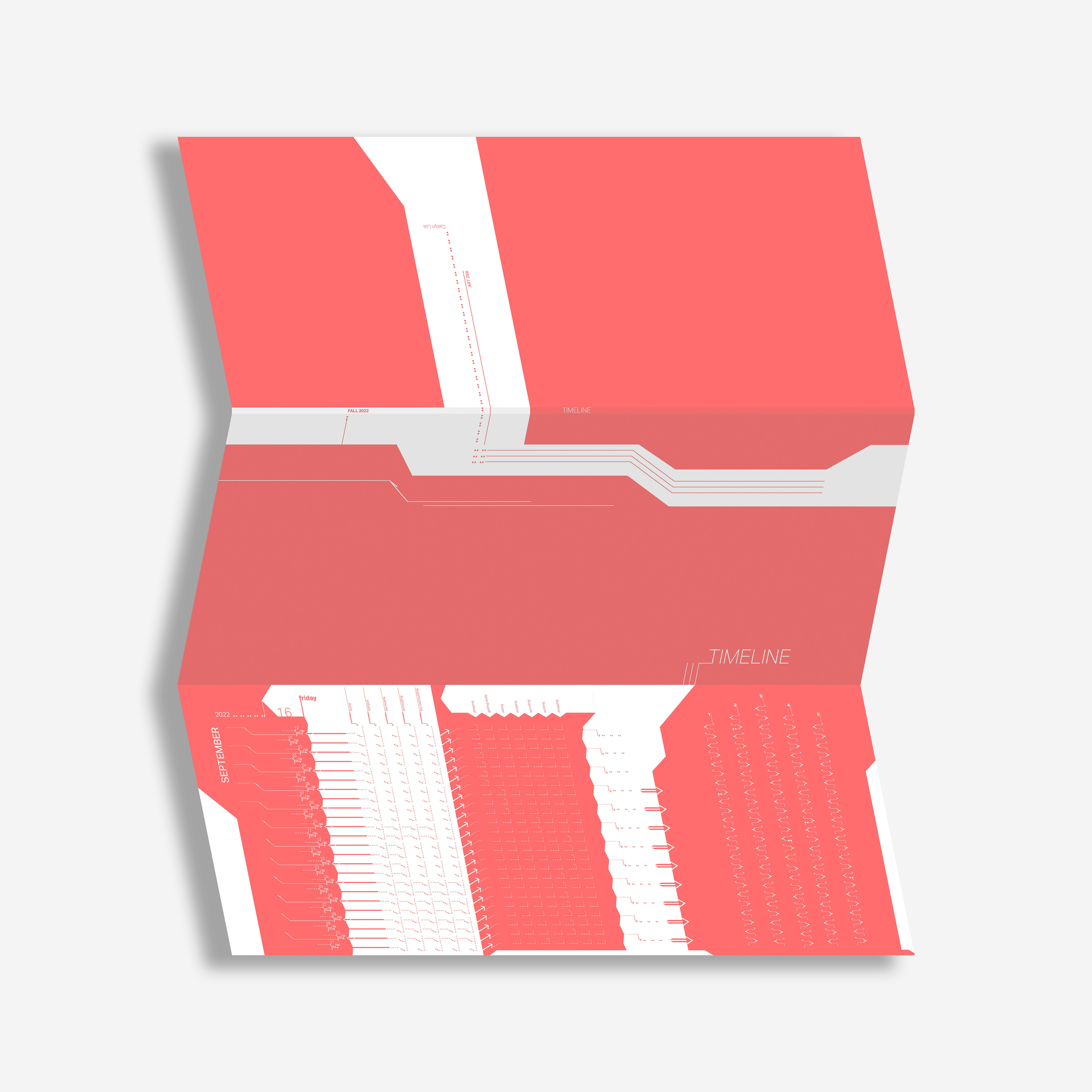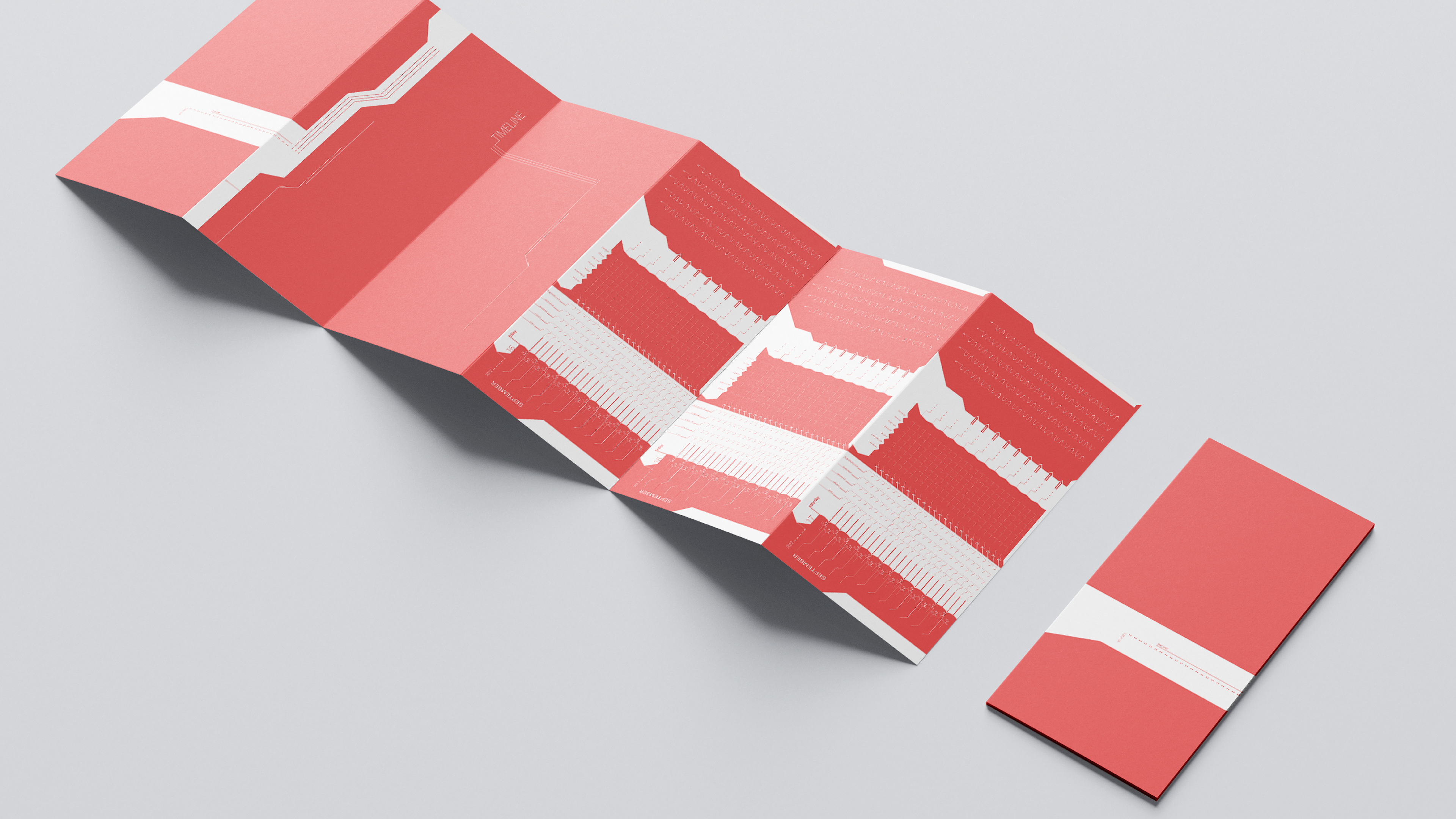 An accordion booklet and slipcase designed to display a timeline of events. This project involves both analytical and typographic work, using clear, organized typographic marks.