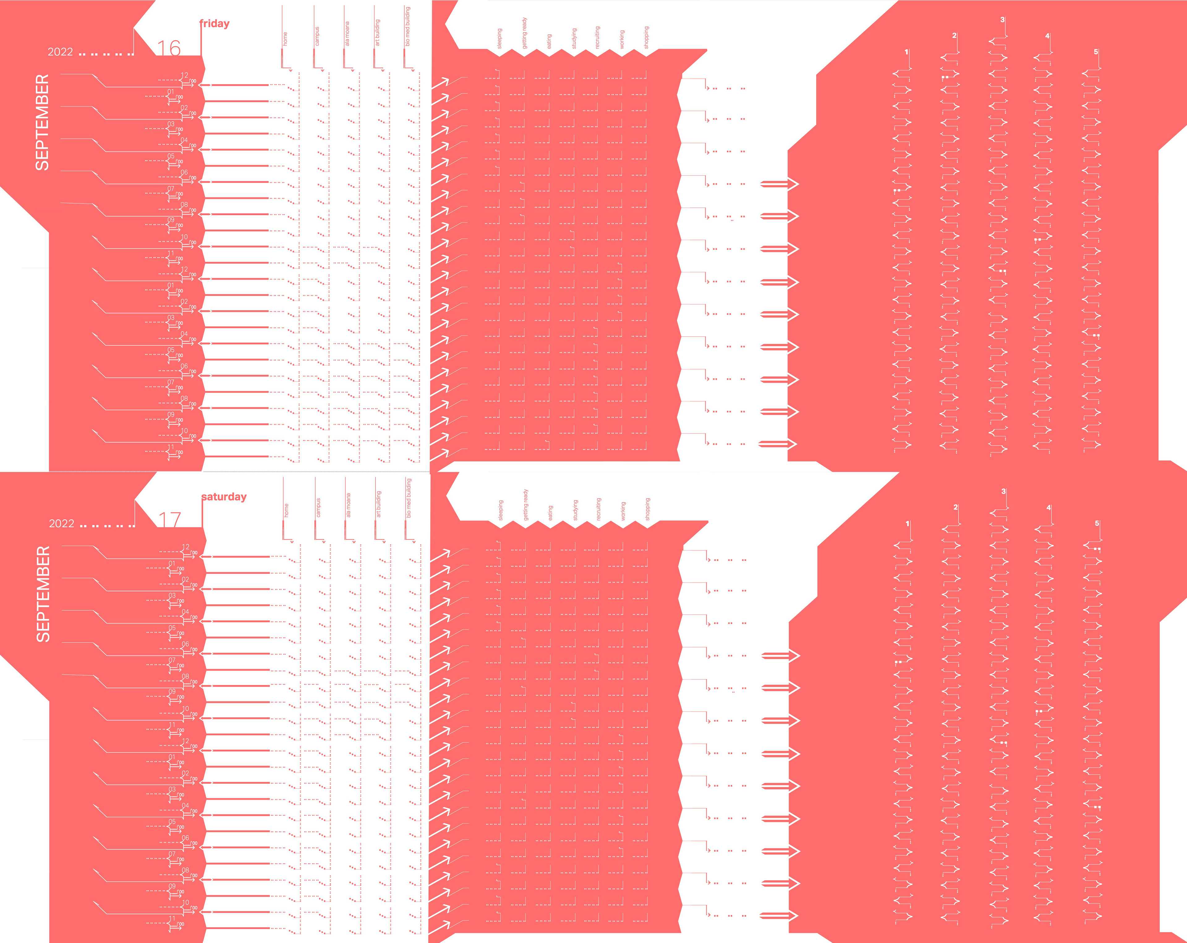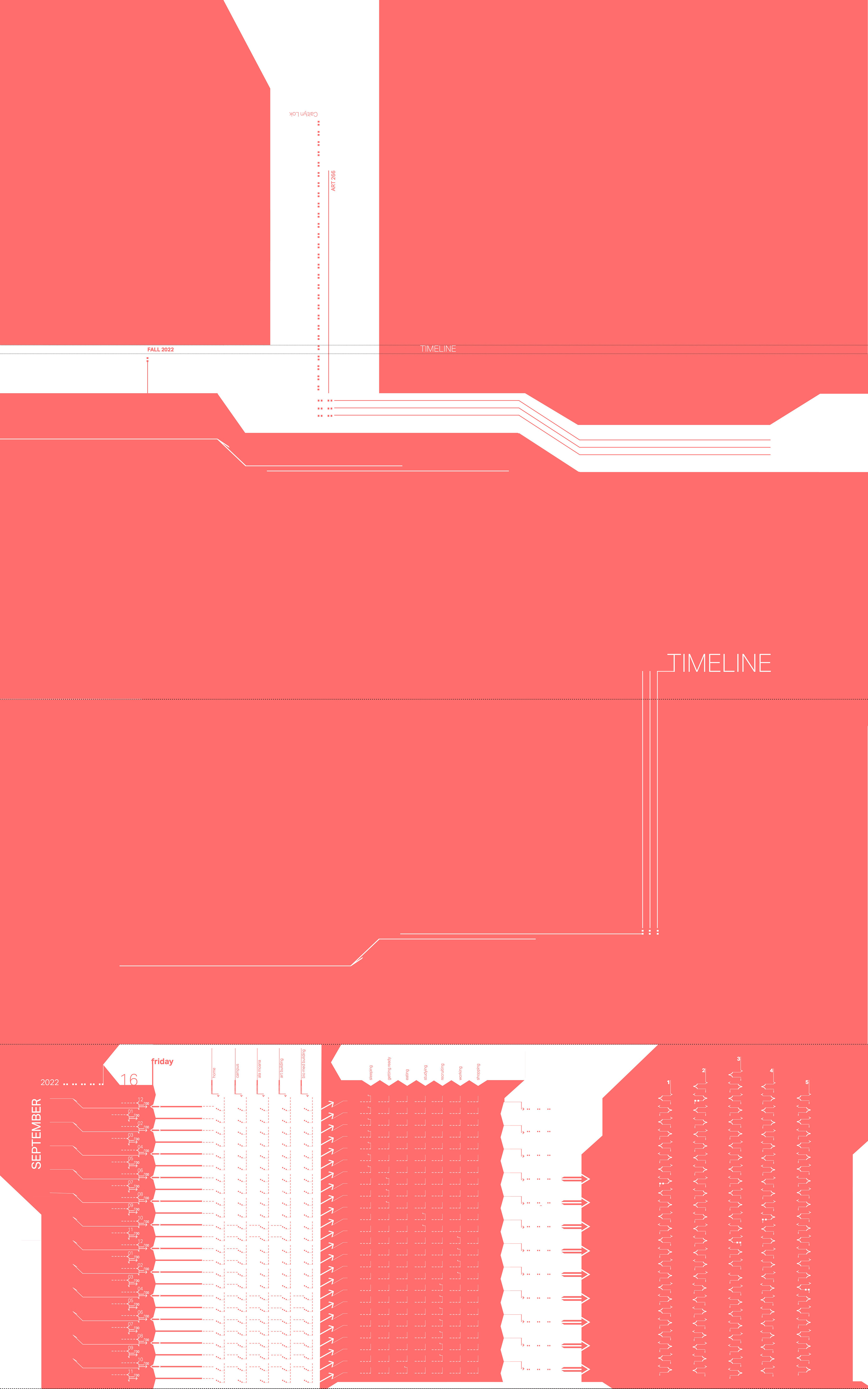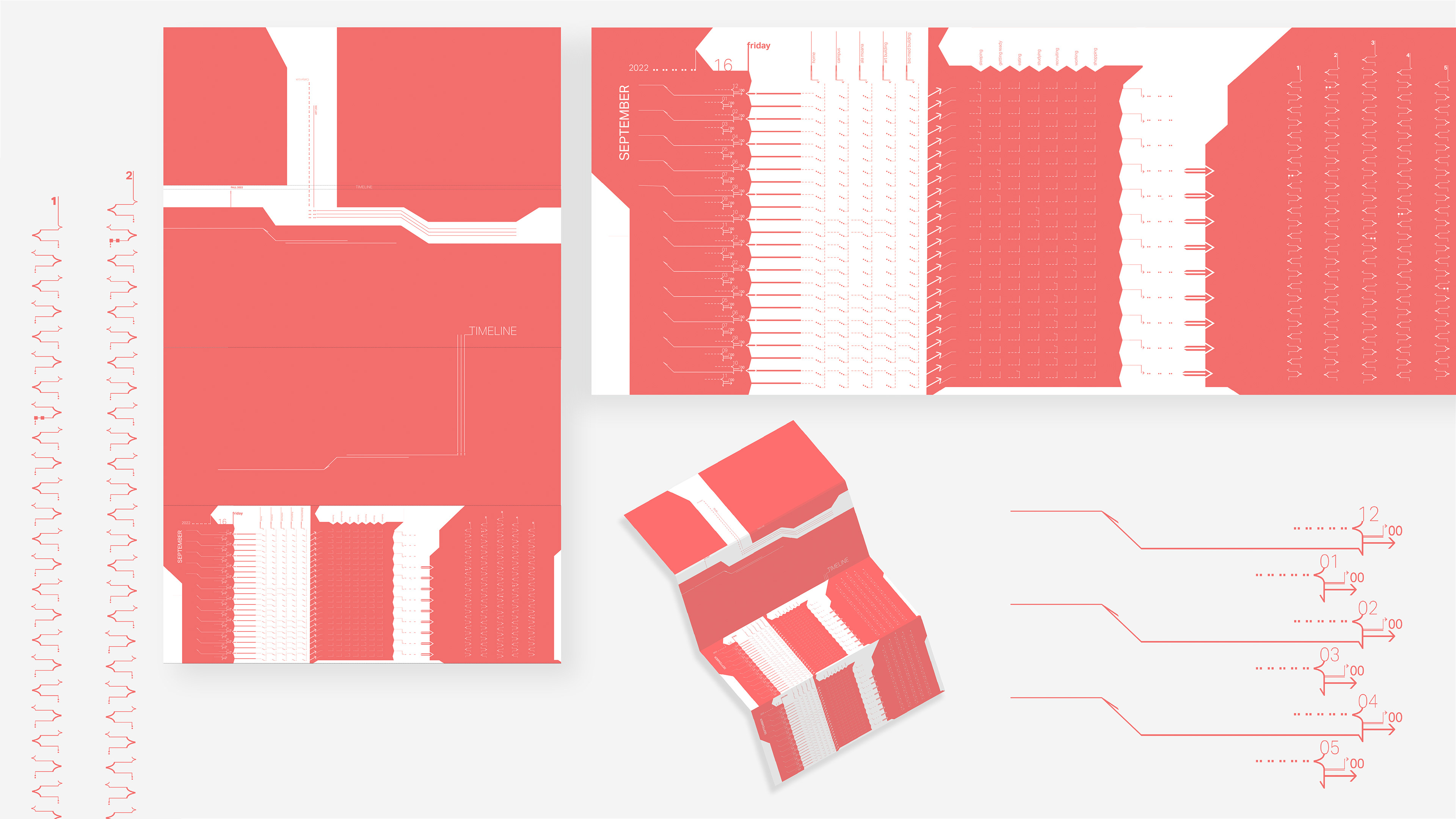 An accordion booklet and slipcase designed to display a timeline of events. This project involves both analytical and typographic work, using clear, organized typographic marks.